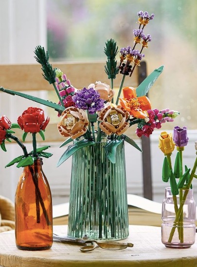 Hal unik lainnya dari koleksi ini adalah beberapa elemen dalam LEGO tersebut yang terbuat bahan plastik nabati. Plastik nabati ini sendiri dibuat dari tebu lho! Untuk LEGO Flower Bouquet, set ini memiliki 756 buah elemen dengan tampilan akhir bunga indah berwarna-warni. Bunga-bunga cantik ini juga bisa ditaruh dalam vas sebagai pajangan. Kombinasi bunga tersebut antara lain, daisy, mawar, aster, dan bunga lainnya.